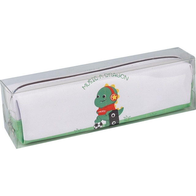 Penar cu un fermoar, model Dinozaur, fiecare penar este ambalat individual in caseta de plastic. Dimensiune: 200 x 62 x 45 mm.